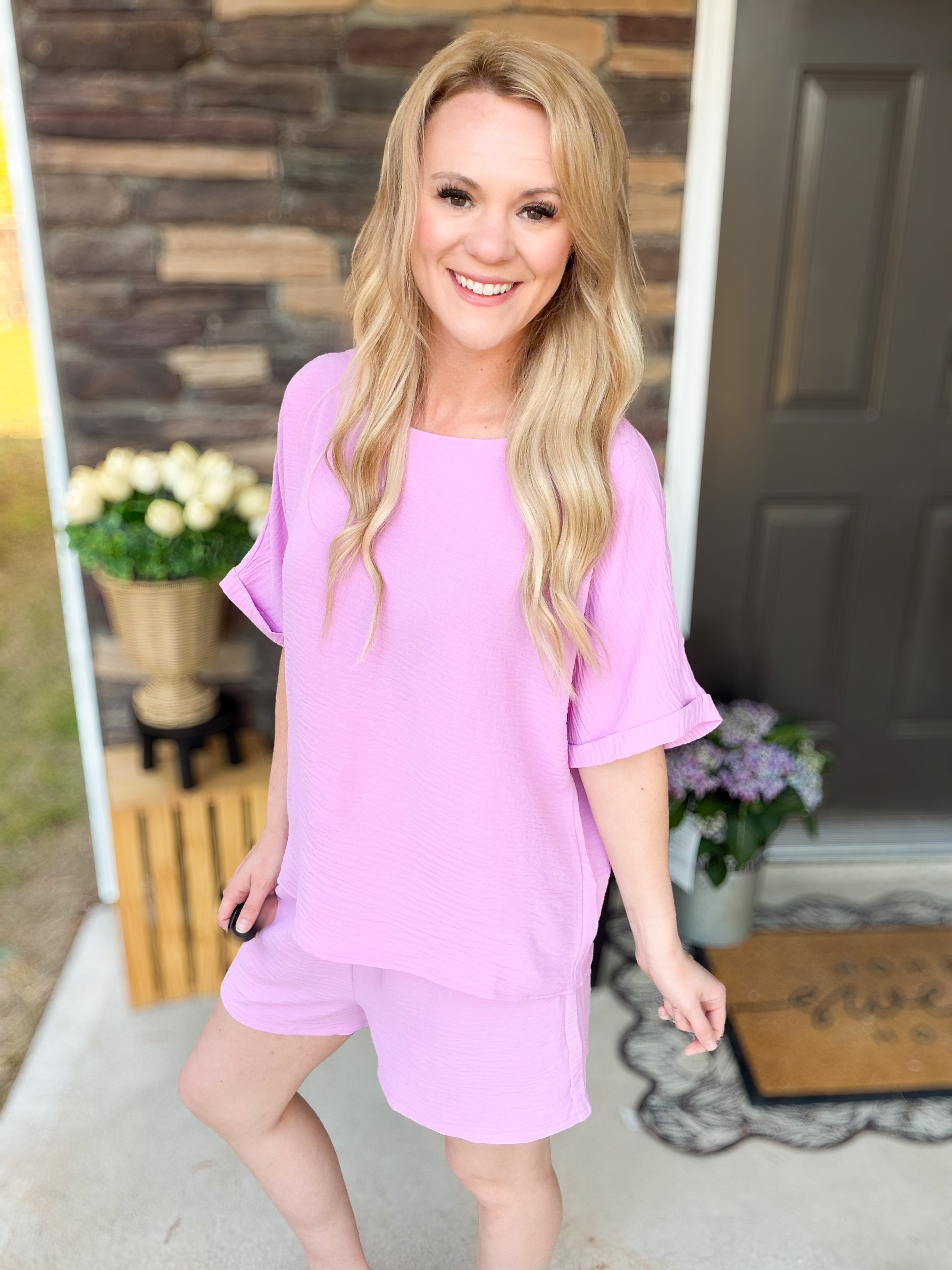 Lightweight, breezy, and effortlessly cute, this matching set gives you that relaxed, put-together look without even trying. The flowy fit + airy fabric make it perfect for warm days when you still want to look styled 🙌