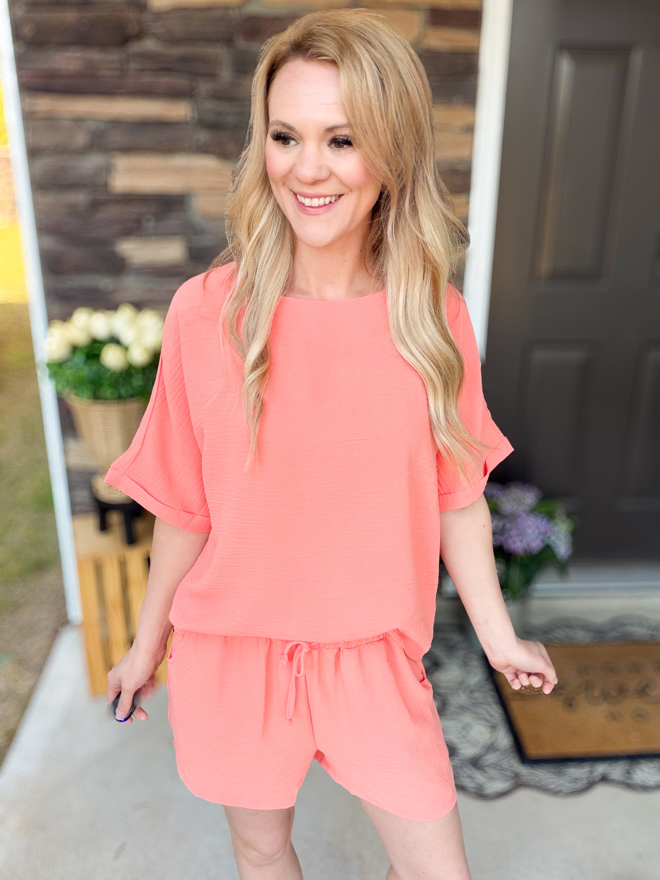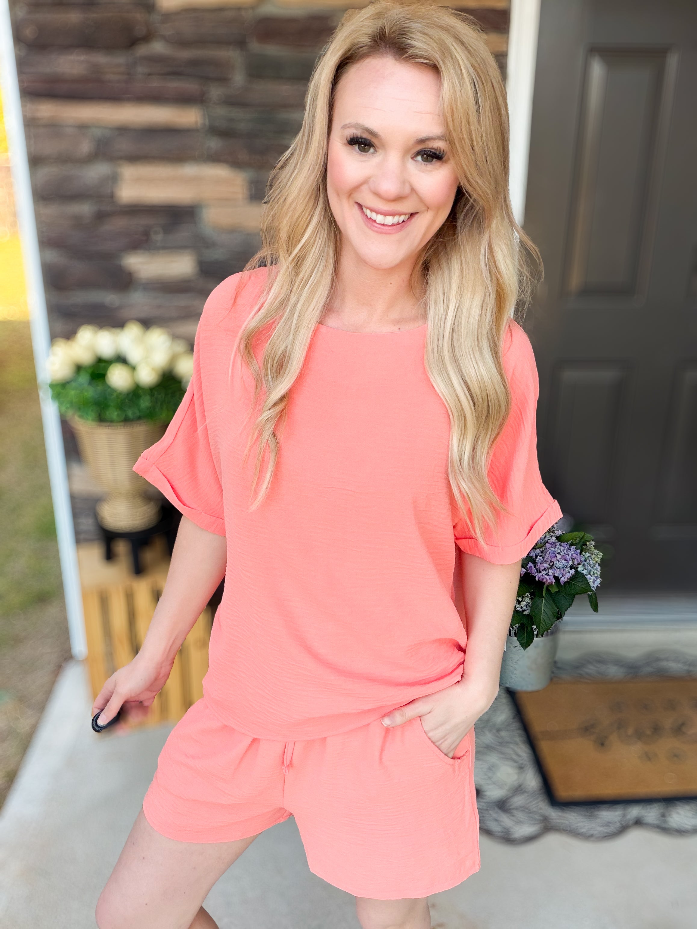 Easy, breezy, and effortlessly cute, this coral matching set is perfect for those days when you want to feel comfy but still look put together. The relaxed fit + lightweight fabric make it a go-to for warm weather days 🙌