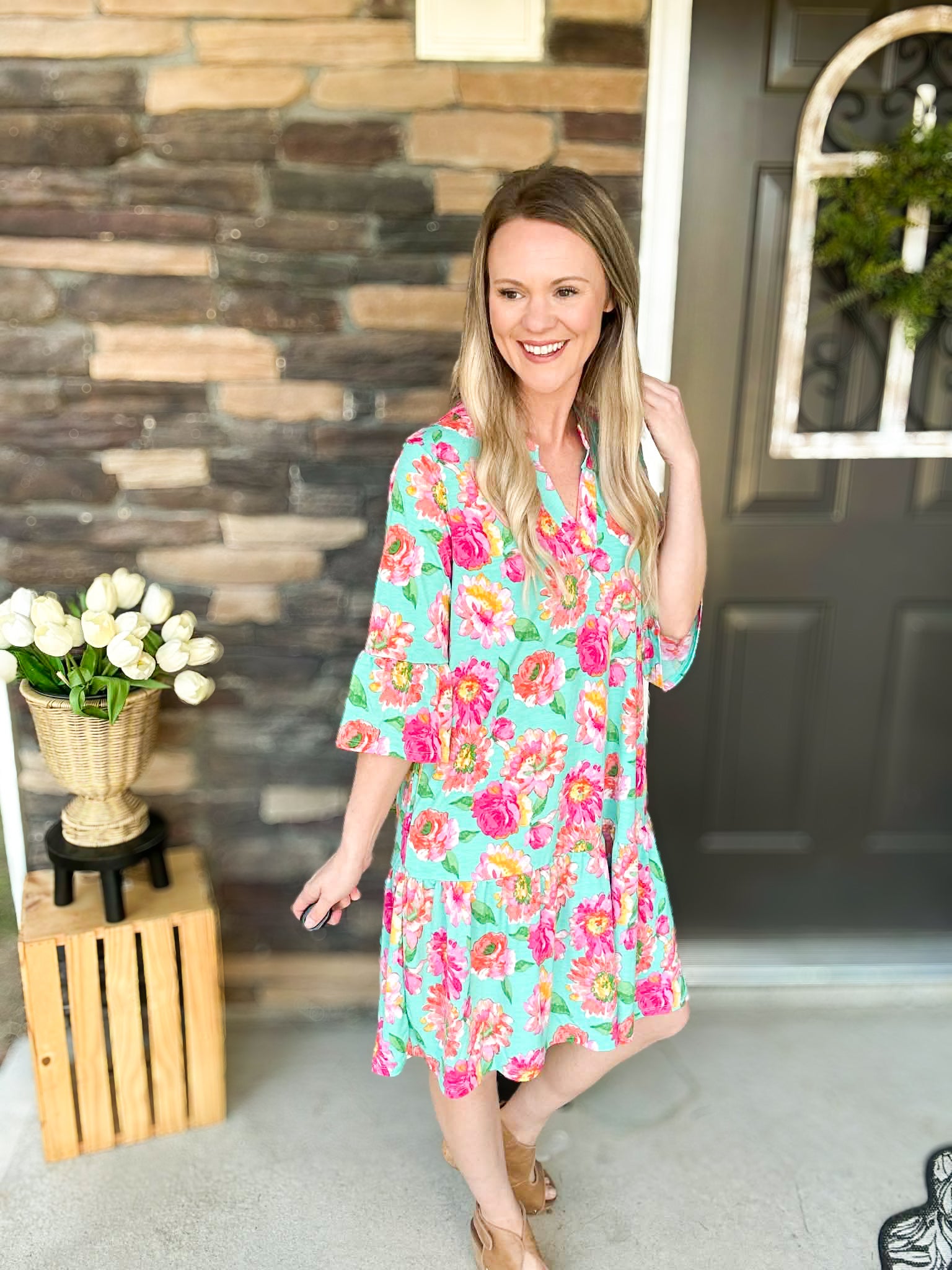 Bright, happy, and effortlessly flattering — the Mint To Be Floral Dress is the kind of piece you’ll reach for when you want to look put together without even trying. The flowy fit and wrinkle-resistant fabric make it perfect for busy days, travel, or anything in between ✨
