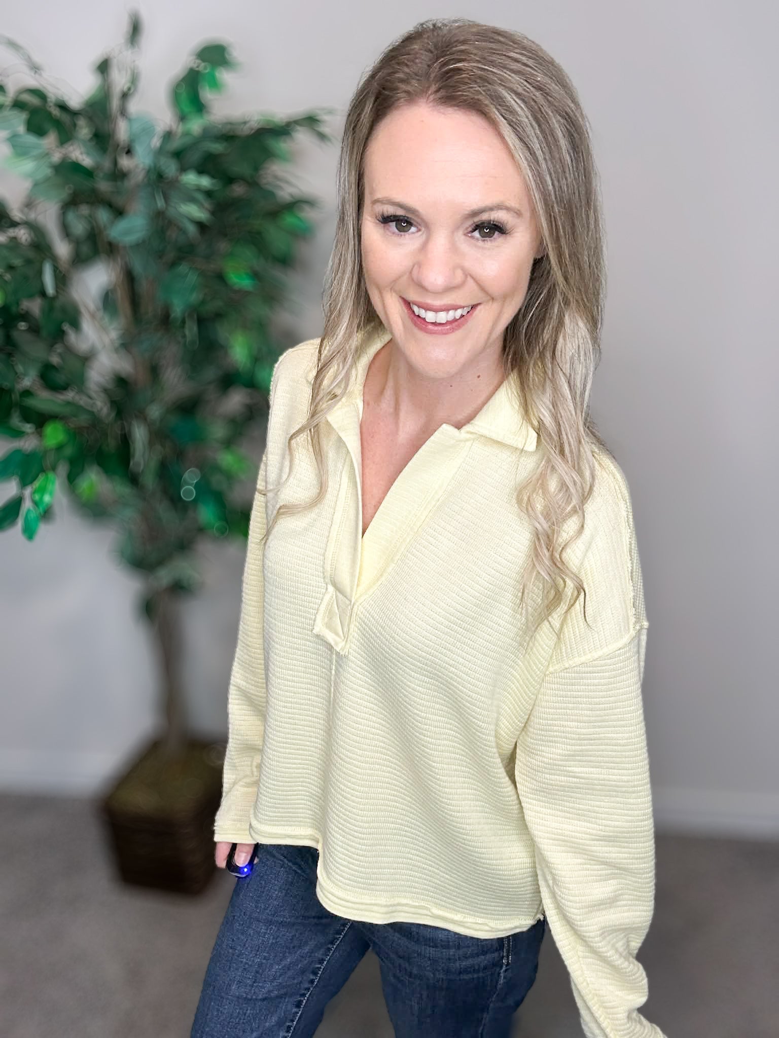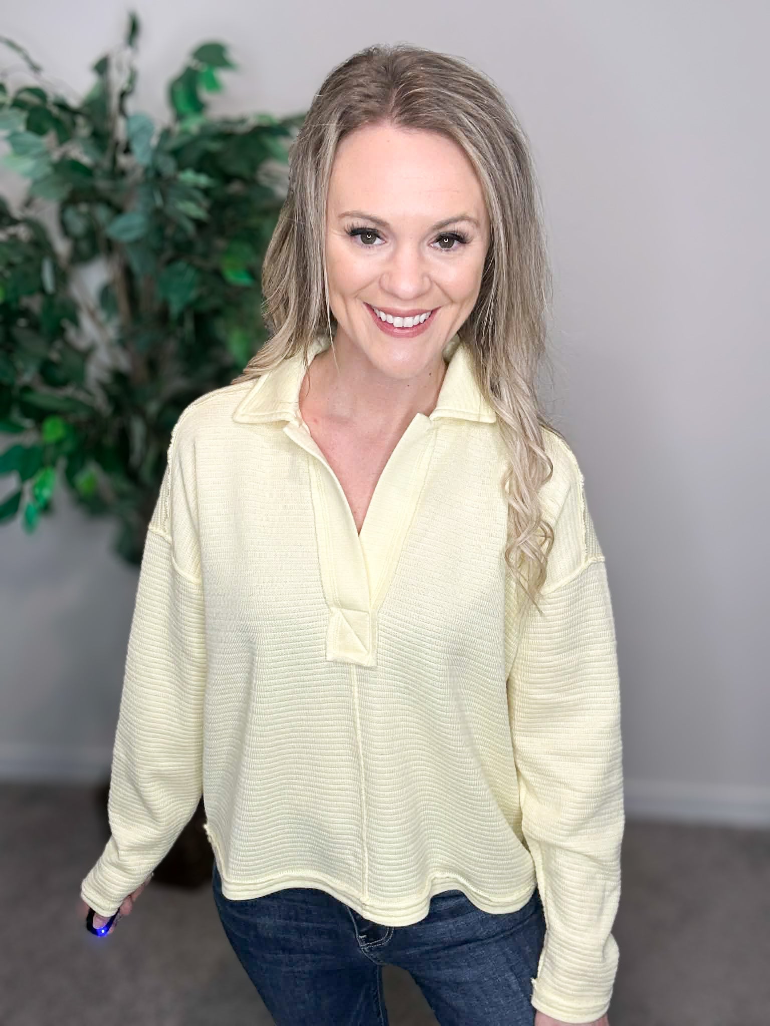 Easy, cozy, and effortlessly polished—the Sunday Brunch Polo is the throw-on top that somehow makes you look instantly put together. The soft-textured knit adds just enough detail to feel elevated, while the relaxed polo silhouette keeps it casual and comfy.