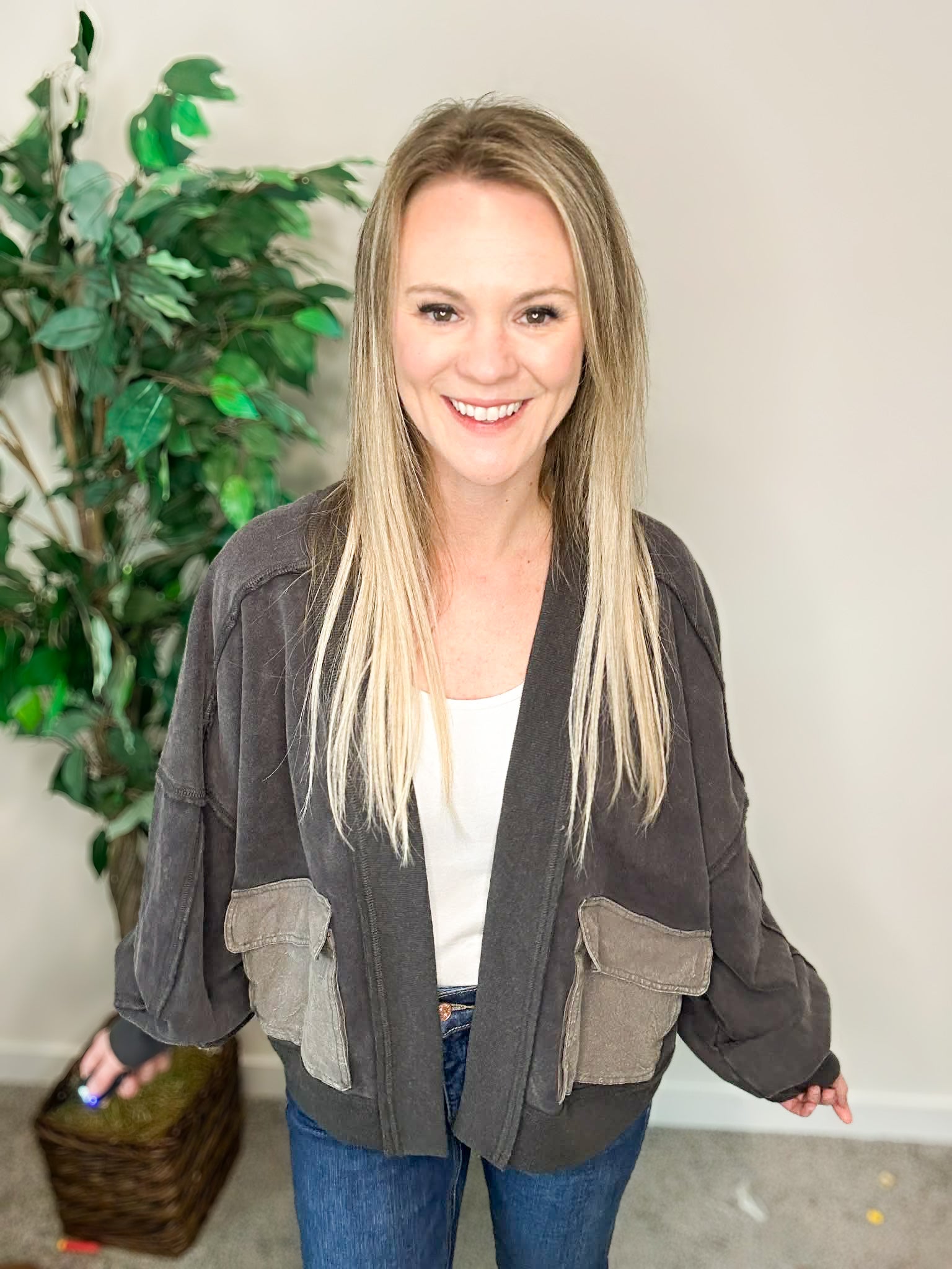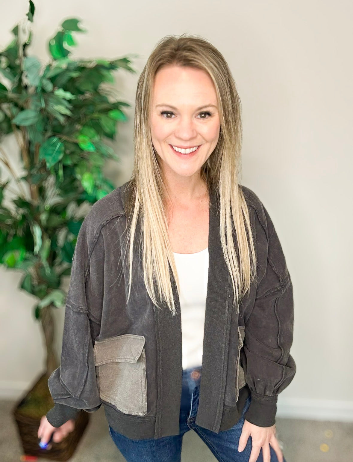 This one is giving effortless cool girl energy with just the right amount of edge. That ash mineral-washed finish and oversized fit make it the kind of layer you’ll throw on constantly — over tees, tanks, bodysuits, you name it.