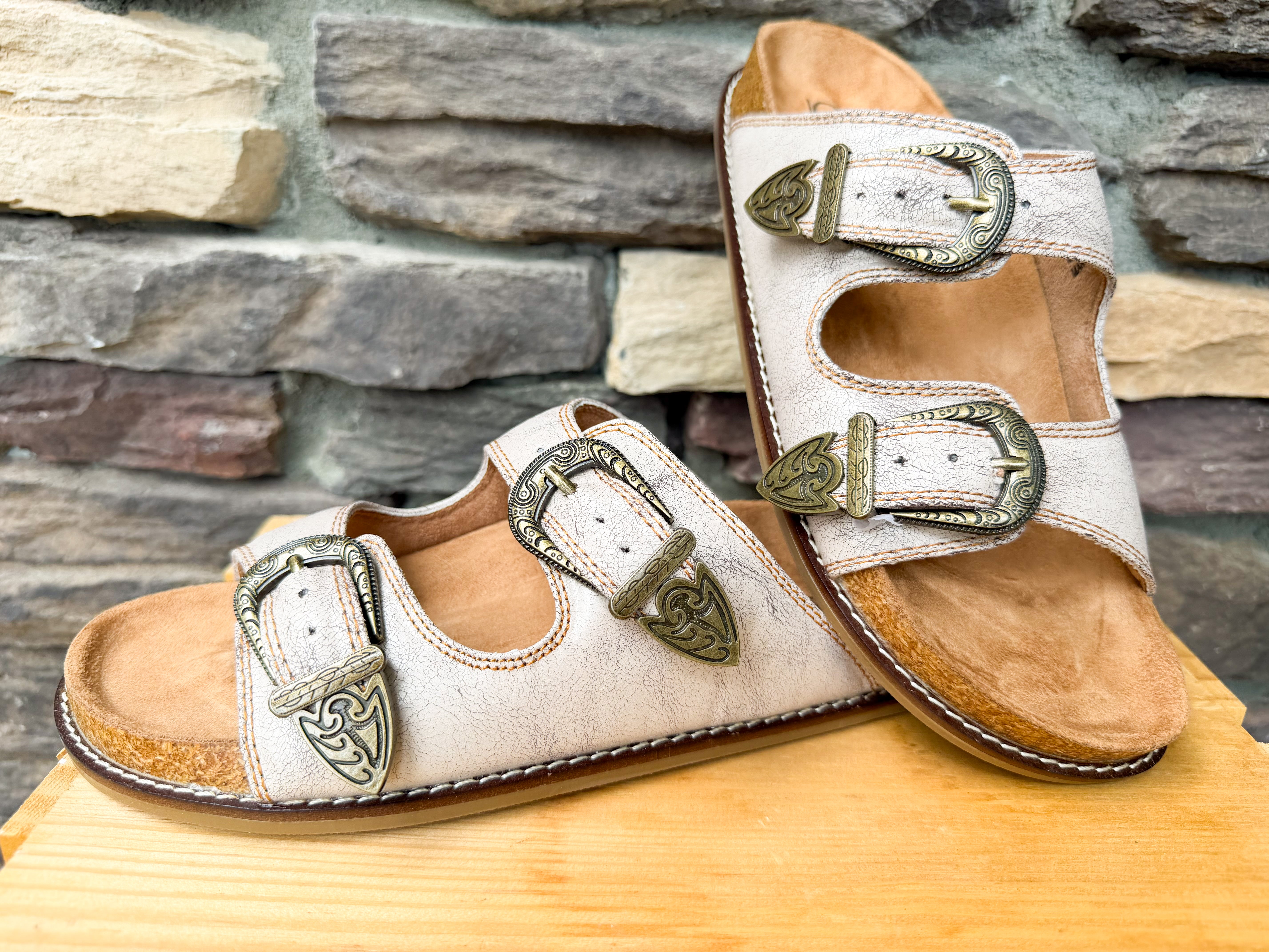 Meet your new go-to sandals for everyday comfort with a super cute western vibe. These double buckle slides feature a soft neutral texture with adjustable straps for that perfect fit every time. Easy to throw on and go, but cute enough to style with just about anything in your closet.