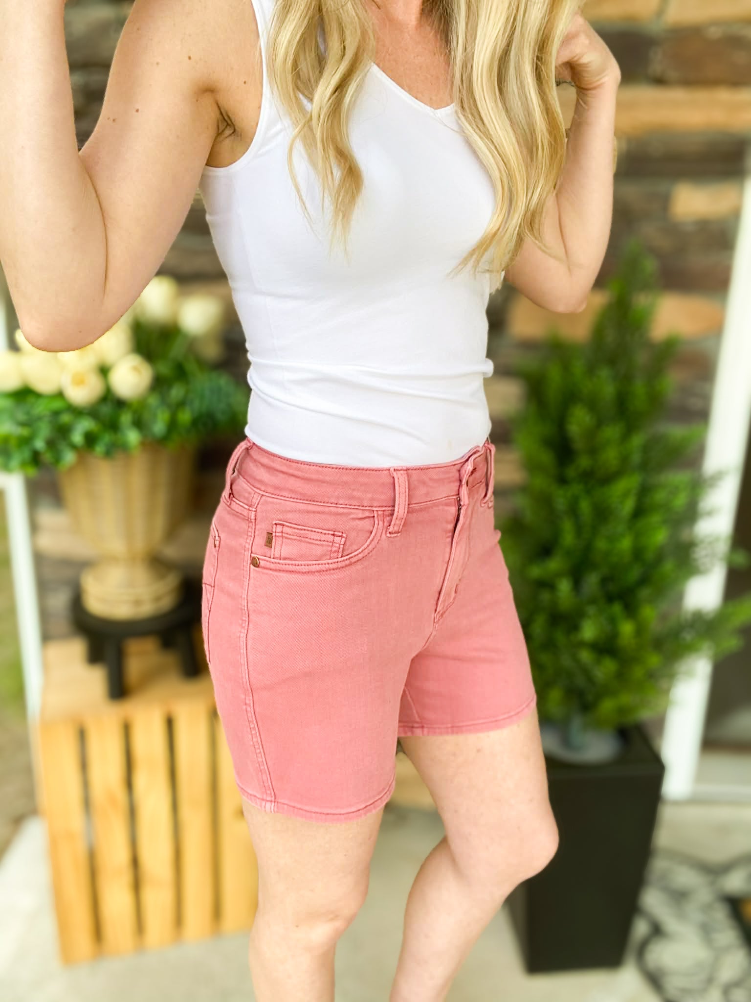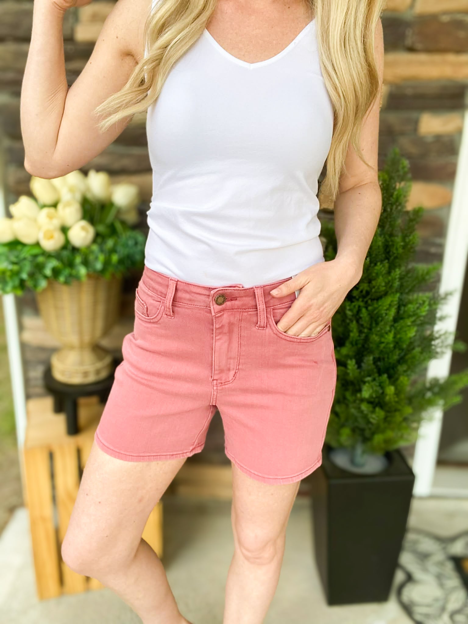 That rich rose hue + subtle back pocket embroidery? She’s feminine, fun, and just a little flirty — exactly how we like it. These are the shorts you grab when you want comfy… but still cute enough to turn heads at the baseball field, brunch, or errands.