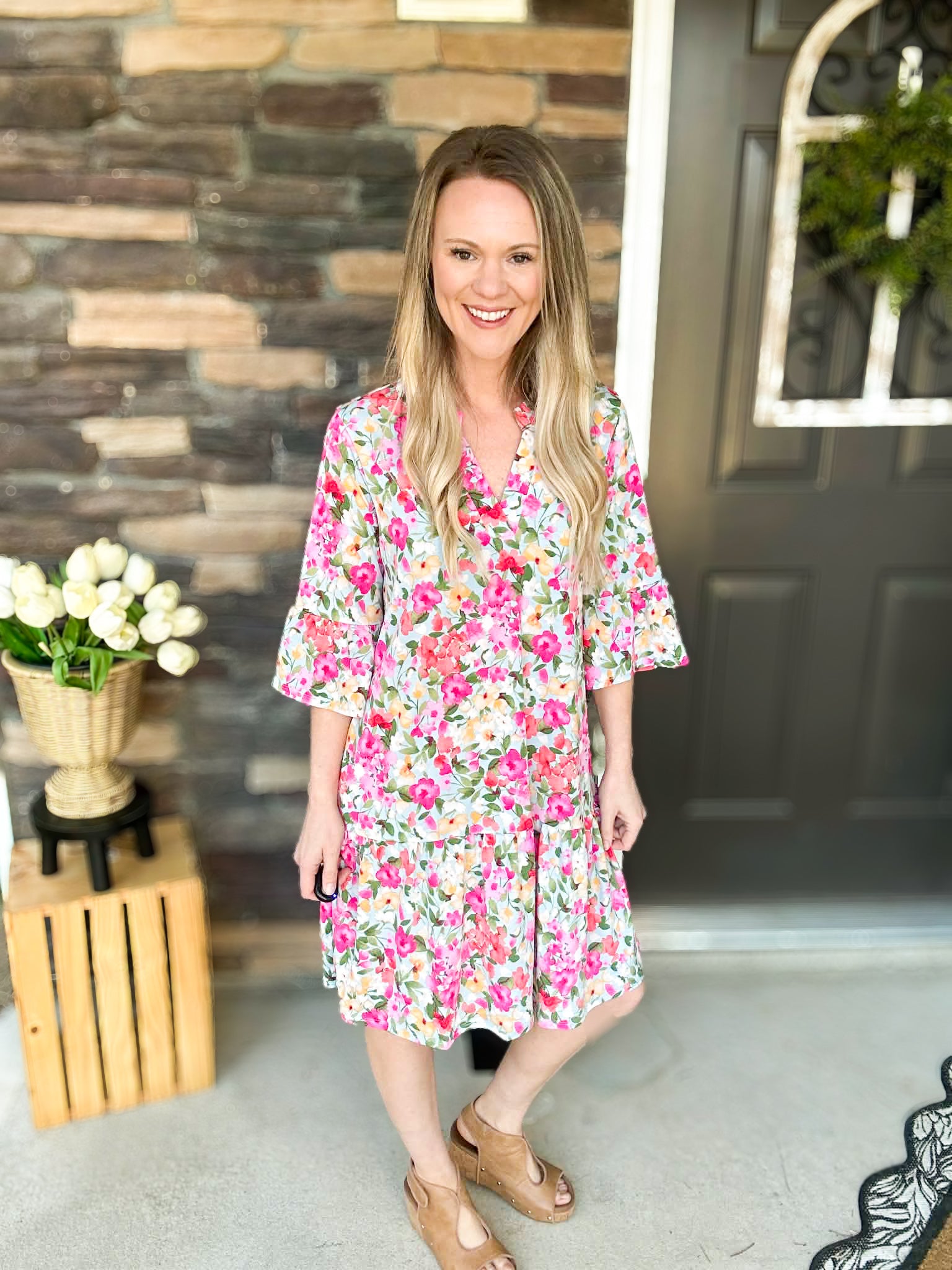 With its soft floral print, flattering smocked details, and that elevated mandarin collar, this dress is the kind of piece that makes you look put-together with zero effort. Plus, the wrinkle-free fabric means you’ll stay looking fresh all day long ✨